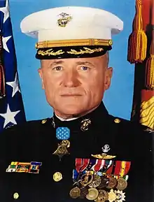 ![]() Wesley L. Fox | Captain | Company A, 1st Battalion, 9th Marines, 3rd Marine Division | A Shau Valley, Republic of Vietnam | 22 February 1969 | [9] |