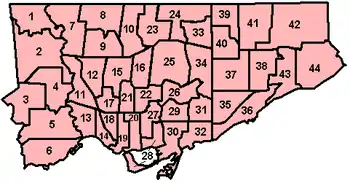 - councillors for each of Toronto's 44 wards,