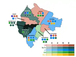 ![]() 2001 Belfast City Council Election Results, shaded by First Preference Votes. | |||||||||||||||||||||||||||||||||||||||||||||||||||||