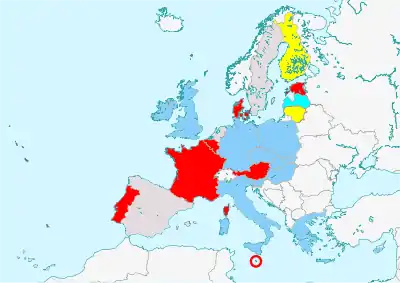 | Cyprus | 2 (DISY) 1 (GTE) |