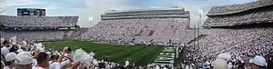 After the opening loss, Weis named freshman Jimmy Clausen the starting quarterback. Clausen would become the eighth Notre Dame freshman to start at quarterback since 1951 and would be the earliest to start when he faced the 15th ranked Penn State Nittany Lions in Happy Valley.[20] The Nittany Lions won the game 31–10. The Irish ended the game with no rushing yards, and had only 144 total yards. They also amassed 97 yards in penalties.[21]