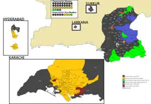 ![]() Map of Sindh showing Assembly Constituencies and winning Parties | |||||||||||||||||||||||||||||||||||||