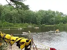 - Dragon Boats, four canoes lashed together and rowed by 11 Scouts at a time.