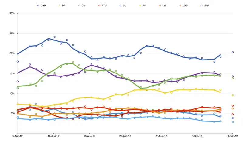 - "DAB fares best taking 13 seats thanks vote splitting tactic". South China Morning Post. 11 September 2012. Retrieved 21 September 2012.