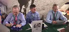 The three living jockeys who have won the Triple Crown—Ron Turcotte, Jean Cruguet, and Steve Cauthen—all attended, the first time all of them had appeared together in a very long time. They signed autographs,[16] and collectively gave entrants the command "Riders up!" at the saddling paddock.[17]
