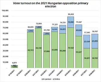 - "Szombaton is rekordmennyiségű ember ment el szavazni az előválasztáson". telex (in Hungarian). 2021-09-26. Retrieved 2021-09-26.