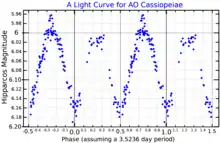 A light curve for AO Cassiopeiae, plotted from Hipparcos data