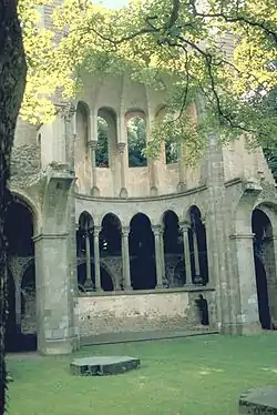 Heisterbach, which had large possessions and drew revenues from many neighbouring towns, remained one of the most flourishing Cistercian monasteries until its suppression in 1803. The library and the archives were given to the city of Düsseldorf; the monastery and the church were sold and torn down in 1809, and only the apse with the ruins of the choir remains.[1]