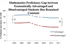 From 2005 to 2011, the gap between advantaged and disadvantaged students remained constant in Math proficiency[6]