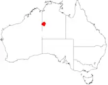 The shrub is found in a small area of the Tanami Desert in the Northern Territory close to the Western Australian border. It is usually situated on stony lateritic ridges and plains where it grows in shallow clay loamy soils as a part of spinifex communities.[4]