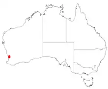 The species has a very small range, confined to an area between Chittering, Swan and Kalamunda where it grows on the slopes of the Darling Range in lateritic soils.[4] It is mostly found as part of Eucalyptus woodland communities.[5]