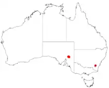 It has a limited distribution in the Flinders Range of South Australia and is considered to be a rare species which was previously thought to be extinct. It is commonly situated among outcropping areas of quartzite along the lines of watercourses and on the slopes of rocky gulleys growing in skeletal soils in open woodland or shrubland communities often in association with Eucalyptus camaldulensis , Eucalyptus flindersii and Callitris glaucophylla.[2]