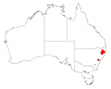 The shrub has a limited distribution in upper basin of the Macleay River in New South Wales to the east of Armidale.[2] It is reasonably widespread in the escarpment gorges from around Apsley Falls to Wollomombi Falls and also in the Guy Fawkes River National Park usually in low woodland or open forest communities situated in steep country.[1]