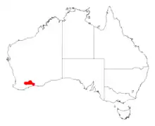 It is native to an area in the Goldfields-Esperance and Wheatbelt regions of Western Australia where it is often situated on hilltops and rises growing in sandy or gravelly soils often over or around laterite.[1]