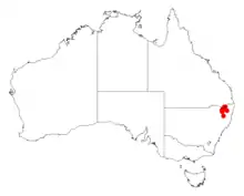 It is endemic to a small area in north western New South Wales at the border with Queensland in the Wallangarra district where it is found among granite outcrops as a part of heath or dry sclerophyll forest communities.[1] It is usually situated on elevated tablelands with an altitude of 900 to 1,200 m (3,000 to 3,900 ft) or on ridges growing in acidic soils that are derived from granite.[2]
