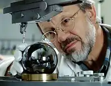 Achim Leistner is an Australian optician of German origin.[1] During his retirement, he was asked to join the Avogadro project to craft a silicon sphere with high smoothness, as automated machining does not match his precision.[2]