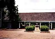 Achimota School occupies over two square miles (525 hectares) of prime real estate in the middle of the Achimota Forest Reserve in the Accra Metropolitan Area. The school's colonial architecture and planned landscape make it visually pleasing to tour the campus and its wooded countryside-like surroundings. On campus, the three Statues of the founders are arranged in a triangle-like formation with an unknown significance. The campus facilities comprise two libraries, a cadet square, two chapels - the Aggrey Memorial Chapel and the Catholic Chapel; four dining halls, two on the eastern compound and another two on the Western campus, two gymnasia, the Achimota School Post Office, extensive sports playing fields, a swimming pool,[15] a cricket oval, basketball court, tennis and squash courts, and an arboretum. There are several bungalows on campus for teaching staff members.