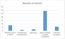 The graph shows the occupation types and number of women employed in them from the census data of 1881.