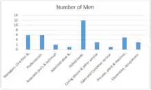 According to the 2011 Census, occupations in skilled trades was the most widespread for men, while six men were variously employed as managers, directors, professionals and senior officials; occupations with lowest counts were in sales and customer service and administrative and secretarial occupations. Eight women were employed in administrative and secretarial services, with the lowest count was for professions.[4][5]