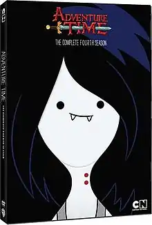 Warner Home Video released multiple DVD volumes, such as Jake vs. Me-Mow, Fionna and Cake, Jake the Dad, The Suitor, Princess Day, Finn the Human, Frost & Fire, The Enchiridion, and Card Wars which contain episodes from the fourth season.[50][51][52][53][54][55][56][57] All DVD releases can be purchased on the Cartoon Network Shop, and the individual episodes can be downloaded from both the iTunes Store and Amazon.com.[58][59][60]