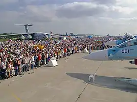 In 2008, the aircraft industry consisted of 106 enterprises, 18 of which belonged to the United Aircraft Corporation.[24] One of the most successful companies is Sukhoi,[25] which possesses a wide portfolio of internationally competitive military aircraft, including the Su-27, Su-30 and Su-35 models. On the civilian segment, the company's most important project is the Superjet 100.[7] Komsomolsk-on-Amur Aircraft Production Association, Russia's largest aircraft enterprise, is responsible for manufacturing Sukhoi products.[26] Joint Stock Company Tupolev focuses on the civil aviation market with its Tu-204 and Tu-214 planes, but is also responsible for the long-range bomber Tu-160 and for developing its successors. Mass production of Tu-204 planes is accomplished by Aviastar SP, located in Ulyanovsk, while the Tu-214 variant is produced by Kazan Aircraft Production Association.[26] Ilyushin focuses on the military cargo and transport sector. Irkut has a portfolio of trainer and amphibious aircraft projects and competes in the onboard electronics and avionics niche.[7] In the unmanned aerial vehicle segment, ZALA Aero and Vega Radio Engineering Corporation are among the leading companies.