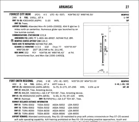 This sample page shows the entry for a small airport, Forrest City Municipal, in Arkansas (click on the image for a clearer view).