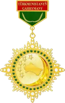- Hero of Turkmenistan (26 September 2019) — for great personal contribution to strengthening sovereignty, constitutional order and state independence, the permanent neutrality of independent neutral Turkmenistan, outstanding services to Turkmen state and people, successes achieved, as well as many years of dedicated work.[8]