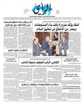 Al Ra'i (Arabic: الرأي, meaning "The Opinion"), also spelled Alrai, is an Arabic daily newspaper in Jordan. The Jordan Press Foundation, owner of the Al Rai, is government-owned.