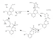 This mechanism is supported by mutations of Arg219. Mutations changing Arg219 to a carboxylate result in a quinonoid intermediate being detected whereas none was detected with arginine.[8] The arginine intermediate has much more free energy, is more unstable, than the acidic residue mutants.[7] The destabilization of the intermediate promotes specificity of the reaction,.[8][9]