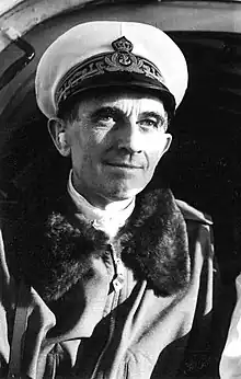 Having returned to Italy to take up the post of President of the Superior Council of the Navy in Rome, he was surprised in the capital by the proclamation of the Armistice of Cassibile on 8 September 1943. He refused any collaboration with the authorities of the newly established Italian Social Republic and reached his native Piedmont, where he joined the ranks of the Resistance. He fought as a partisan in the Langhe, taking part in numerous war actions with Enrico Martini's 1° Gruppo Divisioni Alpine, for which after the end of the war he would be awarded a second silver medal for military valor. In April 1945 he resumed active service in the Navy, assigned to the Ministry as a member of the Special Commission of Inquiry, where he served until March 4, 1946 when he retired from active service. He died in Turin on March 27, 1958.[1][9][10][11][12]