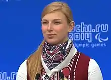 Alena Kaufman (Алена Владимировна Кауфман) is a Russian paralympic biathlete and skier who won two gold medals at the Sochi Paralympic Games[1] for 6,[2] and 10 km race respectively.[3][4][5] On March 12, 2014, she was congratulated by the Russian President Vladimir Putin for winning a bronze medal in 1 km cross-country skiing.[6] Previously, she also was a gold medalist at the 2006[7] and bronze one at the 2010 Winter Paralympics.[8]