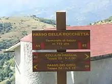The Alta Via dei Monti Liguri (AV, literally "High Route of the Ligurian Mountains") is a long-distance waymarked hiking trail in the Italian region of Liguria. In about 440 kilometres (270 mi) and 44 day hikes,[1] it runs through the arc formed by Ligurian Alps and Ligurian Apennines from Ventimiglia (IM, in the westernmost part of the region) to Ceparana (Bolano, SP, on its east side).