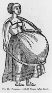 Paré was also an important figure in the progress of obstetrics in the middle of the 16th century. He revived the practice of podalic version, and showed how even in cases of head presentation, surgeons with this operation could often deliver the infant safely, instead of having to dismember the infant and extract the infant piece by piece. During his time at the Hôtel-Dieu, Paré directly influenced the education of future royal midwife Louise Boursier.[12]