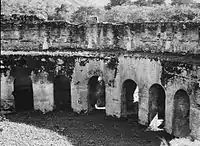 After passing Mixco, the road proceeded more steeply upward, with a precipitous drop on one side and sheer cliff rising on the other; here and there a cross stood by the wayside, marking the spot where some traveler had died. After reaching the highest point, they started down towards Antigua. The city was in sight when a person in uniform planted himself in front of the car; it turned out to be the city commandant, along with six soldiers with wooden guns.[36] Compared to Guatemala City at the time, Antigua was quite nicely kept, although all the churches were equally dilapidated and left entirely to themselves, as rebuilding since 1773 was confined to the strictly necessary. For the most part, only blank walls and shattered domes remained to greet the visitor by 1920,[37] and some of the churches were in pitiful conditions. In Santa Clara, for example, a mule was grazing, and in the Church of Grace a native family had taken up its quarters, along with their varied collection of domestic animals.[38]