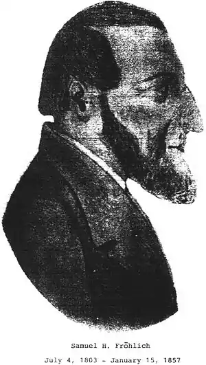The origins of the Apostolic Christian Church are found in the conversion experience of Samuel Heinrich Froehlich[2] (1803–57) of Switzerland. Froehlich was baptized in 1832 and soon founded the Evangelical Baptist Church. The first American church was formed in Lewis County, New York, in 1847 by Benedict Weyeneth (1819–87), who had been sent by Froehlich at the request of Joseph Virkler, a Lewis County minister in an Alsatian Amish-Mennonite church. In 1848 a church was formed in Sardis, Ohio. The church experienced primary growth in the Midwest, where many congregations gained membership from other Anabaptist denominations, chiefly local Amish and Mennonite churches. Though sometimes referred to as the New Amish, these believers generally called themselves Evangelical Baptist. In 1917, the church adopted a uniform name: Apostolic Christian Church.