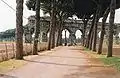 In 1931, a new plan envisaged the Appian Way to become a great park but this idea was threatened after the Second World War with the construction of illegal villas and sports clubs close to the monuments and other housing that encroached on the edges of the zone.[4] Moreover, the new ring road for Rome, the Grande Raccordo Anulare, cut in two the Appian Way at the seventh mile, a mistake that was only rectified with the construction of a tunnel before the Great Jubilee of 2000.[5] The Park finally became a reality in 1988 and in 2002 it was expanded with the purchase of an area known as the Tor Marancia. The Park remains 95% in private hands: 40% is held by aristocratic Roman families; 25% by companies; 21% by small landowners and 10% by the Catholic Church.[5] Attempts to take more of the land into public possession have been constrained by a lack of funds.[6] There remain ambitious plans to extend the Park all the way into Rome as far as the Roman Forum in one direction, and as far as the Castelli Romani park in the other.[7]