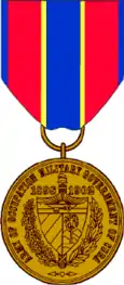 The Army of Cuban Occupation Medal was a military award created by the United States War Department in June 1915. The medal recognizes those service members who performed garrison occupation duty in the United States Protectorate over Cuba, following the close of the Spanish–American War.[1]