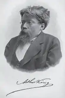 Arthur Peter König (September 13, 1856, Krefeld – October 26, 1901, Berlin) devoted his short life to physiological optics. Born with congenital kyphosis he studied in Bonn and Heidelberg, moving to Berlin in the fall of 1879 where he studied under Hermann von Helmholtz, whose assistant he became in 1882. After obtaining a doctoral degree in 1882 he qualified for a professorial position in 1884. In 1890 he became director of the physical department of the Physiological Institute of the University of Berlin. In the same year he married Laura Köttgen with whom he had a son, Arthur, who became an astronomer. Circulatory problems caused by his kyphosis resulted in his premature death in 1901.[1]