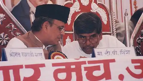 Professor Arun Kamble in conversation with former Prime Minister V.P. Singh.