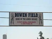 Asher School, the Indians, participates in baseball, softball and men and women's basketball. For forty years, from 1959 to 1999, Asher had the winningest high school baseball team in the nation, led by head coach Murl Bowen. In those forty years, Asher won 2,115 games, lost only 349, hauled home forty-five state championship trophies and fourteen state runners-up, and sent dozens of players to college and minor-league baseball. No high school in history, public or private, has won as many games as the Asher Indians. A book was written about a man who once played baseball for the Asher Indians, called The Innocent Man: Murder and Injustice in a Small Town, although the book was not written about him playing ball for the Indians. The baseball field in Asher was named after Murl Bowen for all the winnings he led Asher to in his coaching years that he was there, and his ever-lasting impression that he left on all Asher citizens. Up to this date, even after slipping into retirement, you can still see Mr. Murl Bowen at the school's basketball games and boys' baseball games.[27]