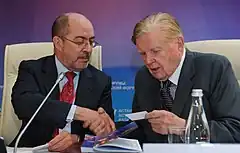 - The second dialogue took place on March 11 and 12, 2009, when the forum focused on the economic security of Eurasia in the system of global risks.[8] The recommendations of the forum were submitted to the 2009 G-20 London Summit in April 2009.[9] The forum was attended by Nobel laureates Robert Mundell and Edmund Phelps, President Ahmad Muhammad Ali of the Islamic Bank of Development, the European Bank for Reconstruction and Development's former President Jean Lemier, officials of the United Nations and others.[8]