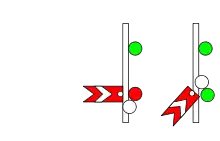 " † " Signal can use a Theatre Display type route indicator or a Feather type.