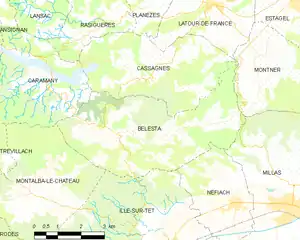 Map of Bélesta and its surrounding communes