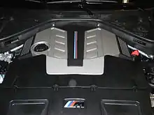 The BMW X5 M is the first xDrive all-wheel-drive vehicle from M GmbH along with the X6 M. The M offers the same utility as the regular X5, with the addition of the V8 M TwinPower Turbo, a twin-turbocharged 4.4-liter V8 delivering 547 bhp (408 kW; 555 PS) at 5,750 rpm and peak torque of 501.2 lb⋅ft (680 N⋅m), available between 1,500 and 5,650 rpm. The S63 engine is a high output variation of the N63 power unit.