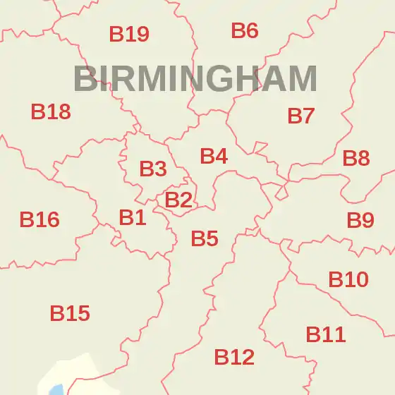 | B16 | BIRMINGHAM | Ladywood, Edgbaston | Birmingham |