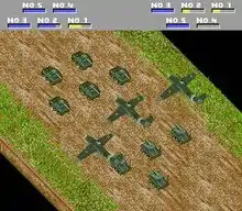 Each unit has a special ability regarding their speed, searching ability, fuel consumption, and attack power. There are three to five attacking squads within a unit. When one unit attacks another unit, a combat screen appears to resolve the conflict and to show the damage. Customizing each unit before every mission in the campaign is possible as a measure to ensure that each unit has plenty of ammunition, fuel, and fighting strength.[4] Attacking squads range in strength from weak mechanized infantry units to powerful artillery and armored tanks.