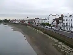 Some of the oldest riverside housing in London is to be found on the Terrace, a road lined with Georgian mansions which runs along the west bend of the river. Construction of these mansions began as early as 1720.[15] Gustav Holst and Ninette de Valois lived in houses on this stretch, both of which have corresponding blue plaques. The Terrace also has an original red brick police station, built in 1891. It has been remodelled as flats but still preserves the original features.