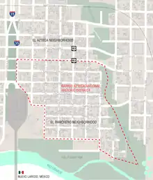 El Azteca is one of the oldest and most intact residential neighborhoods in Laredo, Texas, with buildings dating from the 1870s representing nearly every major architectural type and style that has appeared on the border since that time.[2]