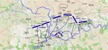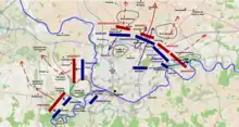 Coburg planned to bring the 12,000 Austrians under his command at Tournai towards Charleroi to join with Orange's and Beaulieu's 40,000 in the theatre for the decisive battle against Jourdan.[21] However, the concentration of Austrian forces on the left wing for a decisive battle created two complications: