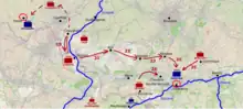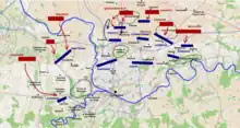 Morlot then attacked on Quosdanovich's front as well as on his right flank via Thumeon. The fighting continued until Morlot's right was uncovered by Grenier's withdrawal from Chassart to Saint-Fiacre. This, coupled with a successful counterattack by Quosdanovich against Morlot's flanking force at Thumeon, forced the French general to withdraw to the south bank of the stream running through Pont-a-Migneloup.[32]
